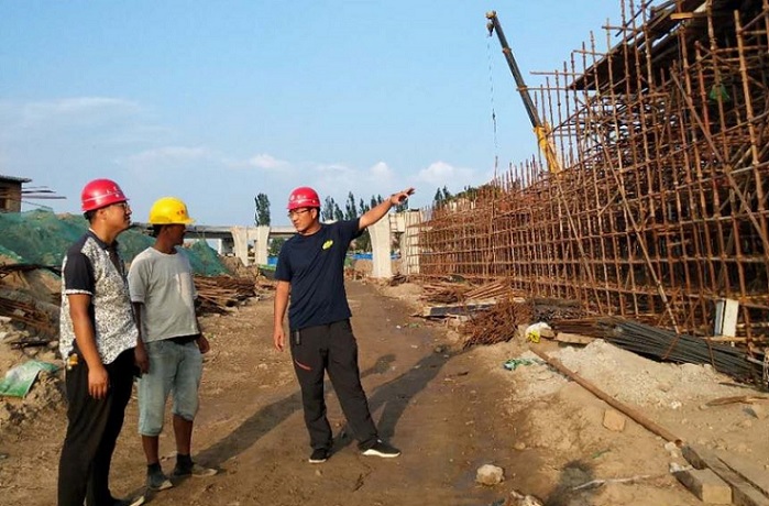 鉆孔樁施工是該工程橋梁部分的重點工序,相當于整座橋梁的“根基”。176根樁基,其中任意一根樁基出現(xiàn)質(zhì)量問題,都將嚴重影響橋梁承重能力。為此,李素偉專門成立了技術(shù)攻關小組,組織編制了詳細的施工專項方案,針對鉆孔泥漿配置、成孔質(zhì)量檢測、沉渣厚度控制等環(huán)節(jié)制定了相應的技術(shù)措施。為防止出現(xiàn)孔壁坍塌和減少沉渣現(xiàn)象,他更是連續(xù)幾天幾夜堅守在施工一線,反復試驗,最終找到最合適的泥漿配比。橋梁部分的鋼箱梁吊裝施工是此次蒙山工程的難點,按照工程設計要求,匝道2需橫跨在匝道1上,由于該工序就位高度約9米,施工場地狹小,吊裝十分困難。面對難題,他沒有絲毫退縮,帶領相關專業(yè)技術(shù)人員制定出了由兩輛500T吊車同時起吊的詳細施工方案,并積極組織專家進行了論證,確保方案的合理性。吊裝鋼箱梁是整個匝道橋的“咽喉”工程,最長的一段鋼箱梁長19米,重達90噸,作業(yè)半徑長,施工難度大,技術(shù)要求高,他連續(xù)兩天兩夜堅守在作業(yè)現(xiàn)場全程督促把控,確保了整個施工工序的順利進行,為后續(xù)的施工建設奠定了良好的基礎。