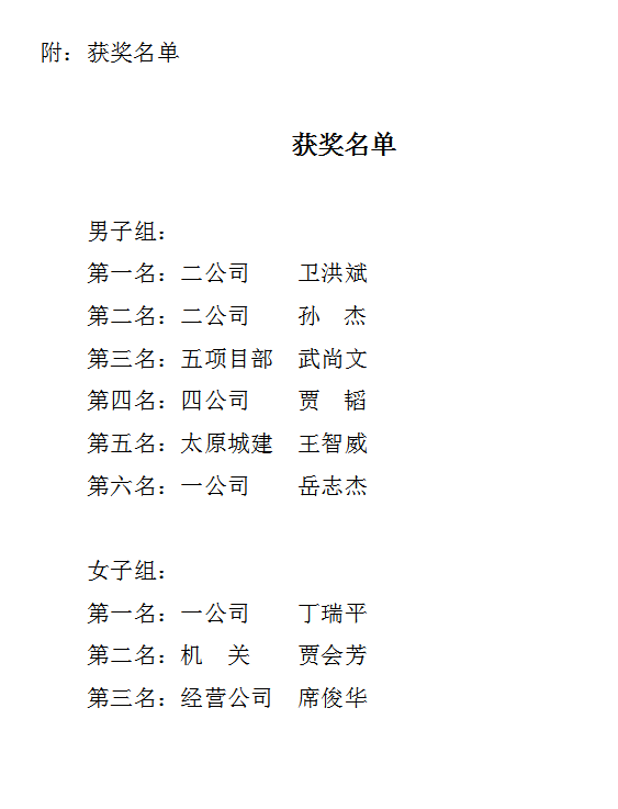 此次比賽分為男子組、女子組進(jìn)行,來自各基層單位、項目部及民建隊的近三十余名選手參賽。經(jīng)過一天的激烈角逐,分別決出了男子前六名和女子前三名,并現(xiàn)場頒發(fā)了獎狀和獎品。黨委委員、監(jiān)事會主席、工會主席馮忠對獲獎選手表示祝賀,并希望大家積極參加市總工會組織的活動,將運(yùn)動場上的拼搏精神發(fā)揚(yáng)到干事創(chuàng)業(yè)中,為推動企業(yè)高質(zhì)量發(fā)展注入新的生機(jī)和活力。