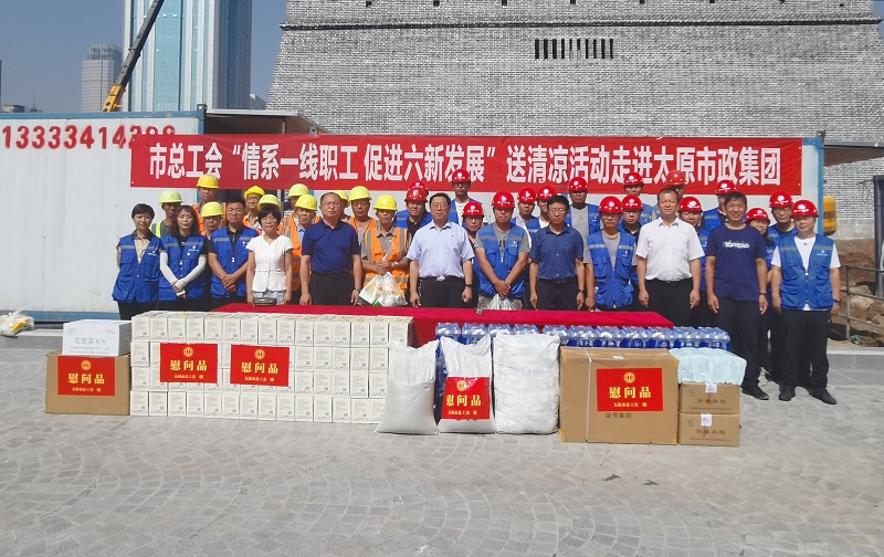 太原市總工會黨組成員、副主席汪倫來到施工現(xiàn)場,對施工人員進(jìn)行了慰問,并為他們送上冰糖、綠豆、沙棘汁等慰問品,感謝他們?yōu)槌鞘薪ㄔO(shè)作出的貢獻(xiàn),同時,他還叮囑大家要注意夏季防暑,合理安排工作時間,注意自身安全。