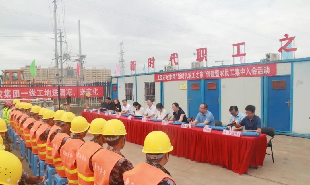 8月7日,太原市政建設(shè)集團(tuán)有限公司“新時(shí)代職工之家”創(chuàng)建暨農(nóng)民工集中入會(huì)活動(dòng)在集團(tuán)公司水馬路工地隆重舉行。市人大常委會(huì)副主任、市總工會(huì)主席張磊,省總工會(huì)組織部副部長朱莉,市總工會(huì)黨組成員、副主席康衛(wèi)青,市總工會(huì)黨組成員、副主席曹劍及相關(guān)部室負(fù)責(zé)人應(yīng)邀出席。集團(tuán)公司黨委書記、董事長郝東輝,黨委副書記、副董事長、總經(jīng)理溫慧武,黨委委員、監(jiān)事會(huì)主席、工會(huì)主席馮忠,副總經(jīng)理王志強(qiáng)及職工、農(nóng)民工代表共230余人參加了活動(dòng)。