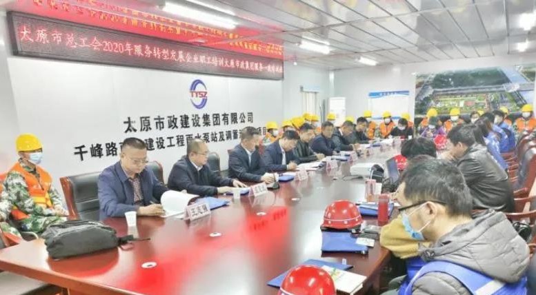 10月27日,太原市總工會(huì)2020年服務(wù)轉(zhuǎn)型發(fā)展企業(yè)職工培訓(xùn)太原市政集團(tuán)一線巡回培訓(xùn)開班儀式在千峰路南延建設(shè)工程雨水泵站及調(diào)蓄池施工工程項(xiàng)目部舉行。太原市總工會(huì)黨組成員、副主席汪倫,太原工會(huì)干部學(xué)校校長張全民及太原市總工會(huì)、太原工會(huì)干部學(xué)校相關(guān)部室負(fù)責(zé)人應(yīng)邀出席。集團(tuán)公司黨委副書記、副董事長、總經(jīng)理溫慧武,黨委委員、監(jiān)事會(huì)主席、工會(huì)主席馮忠,副總經(jīng)理王志強(qiáng)參加了開班儀式。