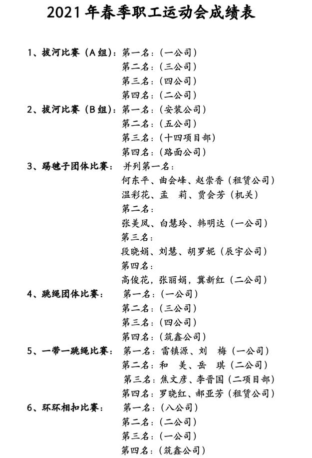 本次運動會為期3天,共設(shè)有9個項目,報名職工達700余人次。運動會涉及拔河、團體跳繩及今年新增加的“環(huán)環(huán)相扣”等團體項目,五子棋、斗地主等個人項目。