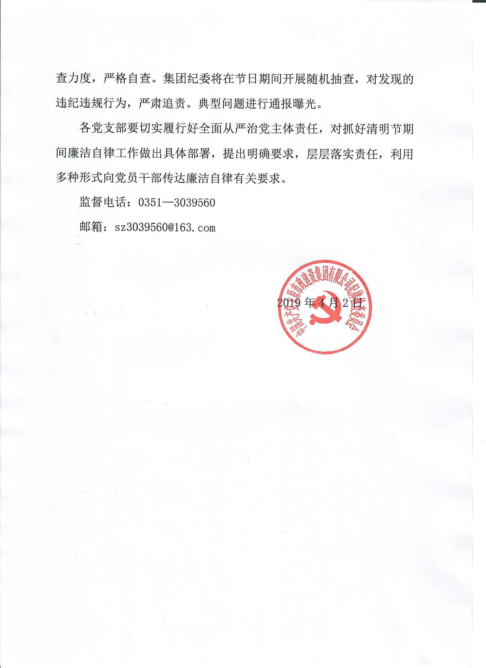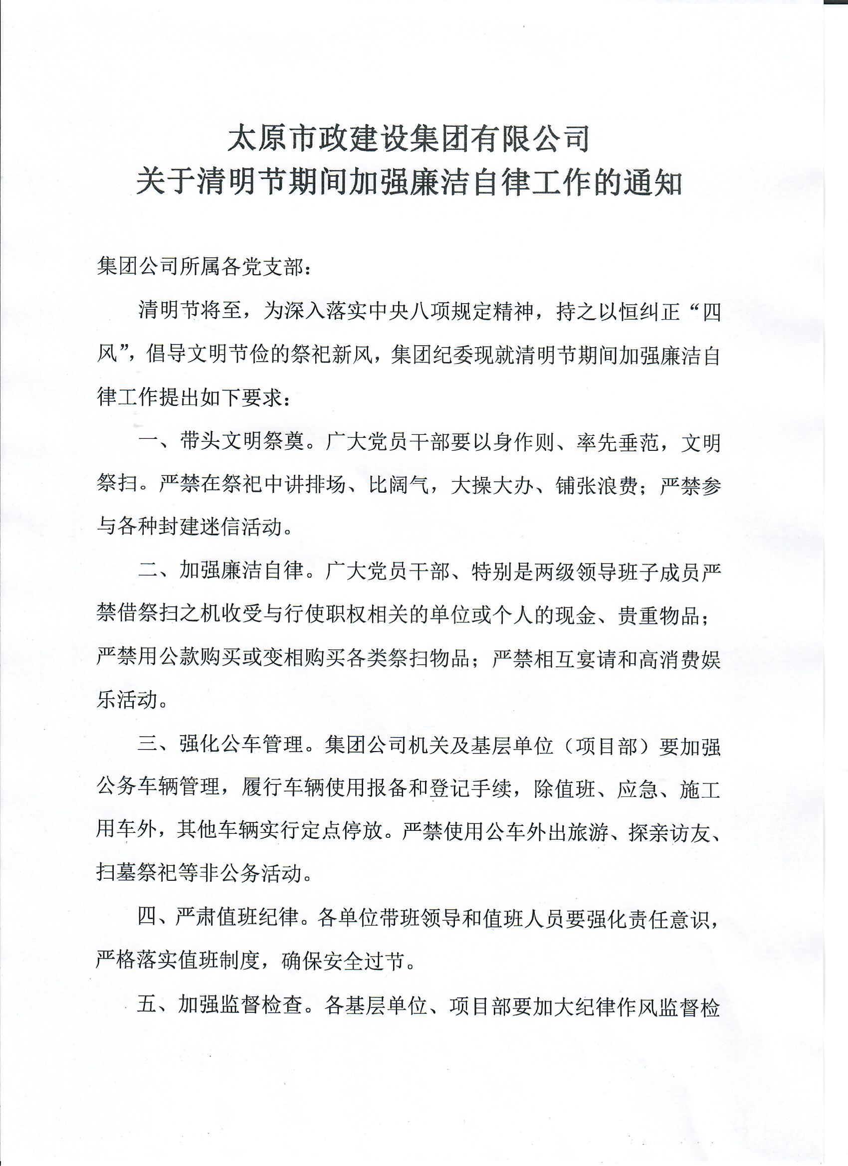 太原市政建設(shè)集團(tuán)有限公司關(guān)于清明節(jié)期間廉潔自律工作的通知