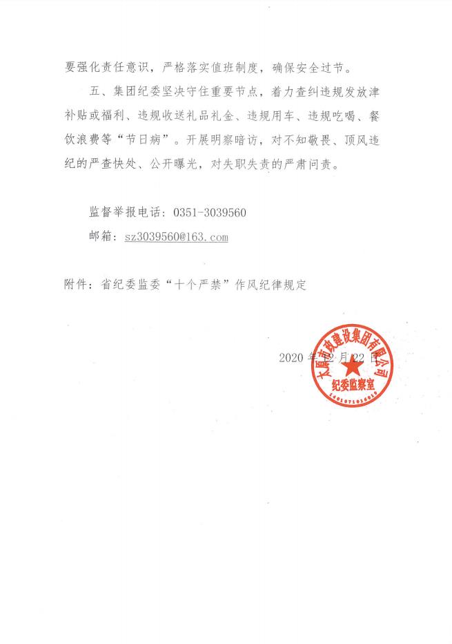 太原市政建設(shè)集團(tuán)有限公司關(guān)于持之以恒正風(fēng)肅紀(jì)確保2021年元旦春節(jié)風(fēng)清氣正的通知