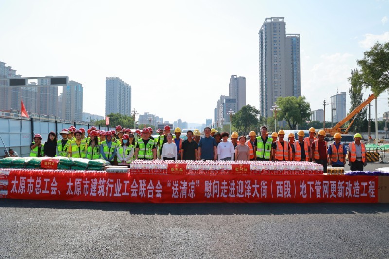 8月14日,太原市建筑行業(yè)工會聯(lián)合會“送清涼”慰問活動走進(jìn)太原市政集團(tuán)承建的迎澤大街(西段)地下管網(wǎng)更新改造工程項(xiàng)目現(xiàn)場。