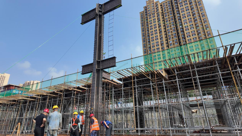 六十二中新校區(qū)“空中操場(chǎng)”完成鋼柱、鋼梁吊裝和焊接工序