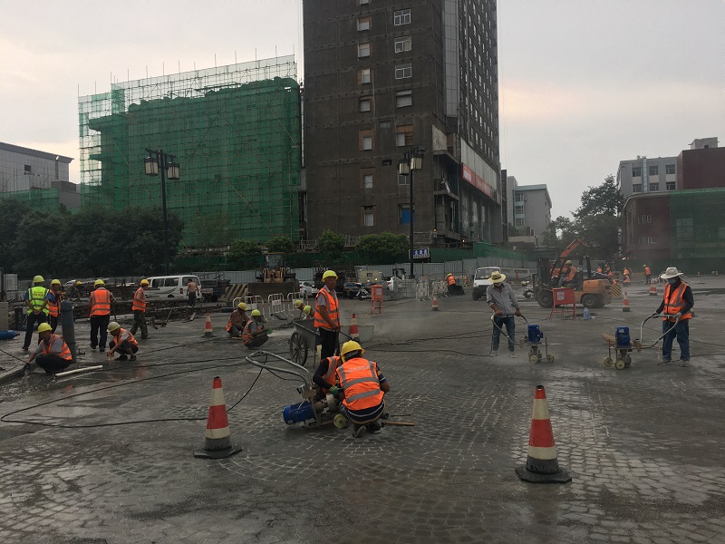 夏日的燥熱抵擋不住全體施工人員的工作熱情,為了全力推進(jìn)工程建設(shè),項(xiàng)目部合理延長每日施工作業(yè)時間,增加作業(yè)班數(shù),不分晝夜進(jìn)行施工作業(yè)。為了有效提高施工速度,項(xiàng)目部采用流水作業(yè)的施工方式,多工作面平行作業(yè),提高機(jī)械利用率。同時,項(xiàng)目部針對季、月、旬作出詳細(xì)計(jì)劃,建立起進(jìn)度協(xié)調(diào)工作制度,每周組織項(xiàng)目部管理人員及各工隊(duì)組長召開施工調(diào)度會,重點(diǎn)解決施工中的技術(shù)難題,以及計(jì)劃執(zhí)行情況和存在的問題,隨時根據(jù)施工情況調(diào)整各施工項(xiàng)目的人力、機(jī)械和材料用量,全力以赴推進(jìn)工程進(jìn)度。截至7月20日,廣場環(huán)路、迎澤南街路面磚鋪裝已完成100%,廣場西路鋪裝已完成90%,廣場東路完成63%;并州北路及廣場南路完成35%;廣場總鋪裝面積3萬多平米,已完成總鋪裝量的50%。
