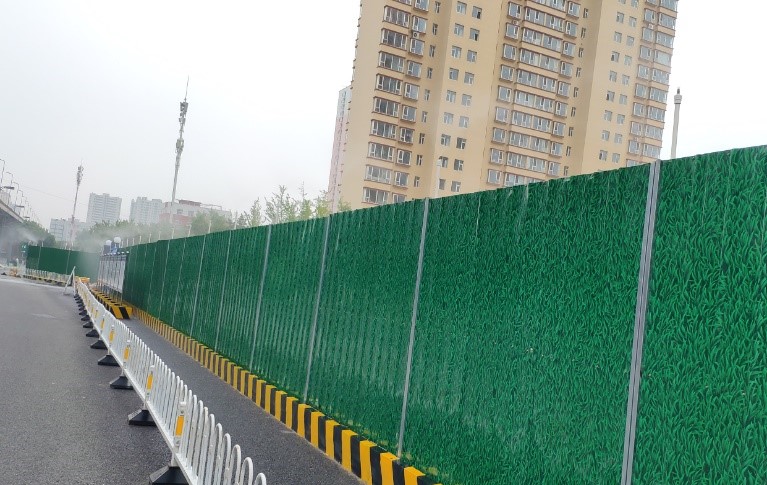由于施工場地臨近居民區(qū),項目部抓實抓牢現(xiàn)場安全施工管理,重點部署警示牌、施工圍擋、灑水降塵等設(shè)施,積極營造安全文明施工環(huán)境。在溝槽開挖路段,統(tǒng)一制作標(biāo)準(zhǔn)防護(hù)圍欄,懸掛警示標(biāo)識,嚴(yán)格控制人員出入施工場地;在臨近居民區(qū)路段,修建便民通道,并在出口處設(shè)置警示欄桿,懸掛安全警示牌,張貼夜間反光貼,保障居民出行安全;在未完全封閉施工路段,項目部采用活動鐵馬和警戒線進(jìn)行隔離,夜間路口放置爆閃燈,并設(shè)專人進(jìn)行監(jiān)管,保證施工現(xiàn)場安全有序;同時,項目部在東中環(huán)全線圍擋處加設(shè)噴淋設(shè)施,對所有裸露作業(yè)面使用綠網(wǎng)進(jìn)行覆蓋并定時灑水降塵,營造綠色安全施工環(huán)境。