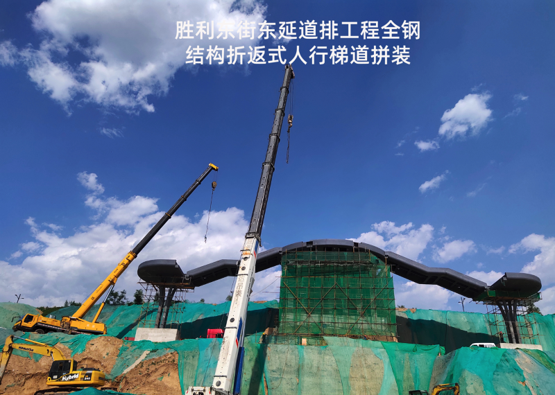 勝利東街東延道排工程起點東中環(huán)路,終點東山高速西側(cè)停車場,施工涉及污水管線、雨水管線、電纜隧道、電力排管、停車場一處,全鋼結(jié)構(gòu)折返式人行梯道一座及長52米,寬15米跨高速人行天橋一座。該工程建成后,成為市民通過橫跨東山過境高速和東峰路的“呂”字型人行天橋,更便捷從市區(qū)前往牛駝?wù)沂苛陥@的一條新線路,八公司全體參建人員先后克服半幅封閉施工、高度落差大、結(jié)構(gòu)工程復(fù)雜等難題,順利完成了跨東山高速公路人行天橋、全鋼鋼箱梁結(jié)構(gòu)人行梯道的施工任務(wù),以“市政實力”打造城市新名片。攻堅戰(zhàn)的硝煙漸漸散去,奮戰(zhàn)的場面依然清晰如昨,市政人甘于奉獻(xiàn)、勇于擔(dān)當(dāng)?shù)木裼忠淮午澘淘谔鞘薪ㄔO(shè)的恢弘畫卷上。