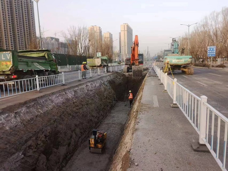 接到施工任務(wù)后,項目部超前部署、科學(xué)規(guī)劃,開展工程推演,根據(jù)施工實際內(nèi)容,將工程分為8個標段,提前安排各標段的人、機、料配置,并組織進行現(xiàn)場勘測,多處布設(shè)探坑,認真摸排現(xiàn)狀管線位置,精準測量拆遷地段,做到施工前各項數(shù)據(jù)“成竹于胸”。由于施工正值冬季,項目部結(jié)合施工現(xiàn)狀,制定冬季施工專項方案,提前籌備各類防寒物資,安排專人負責(zé)生活及作業(yè)區(qū)的用電及防火管理,有效確保施工安全。同時,項目部同步進行工地大門、圍擋安裝,各類標識標牌準備等工作,僅用2天時間已將3000多米圍擋,10個工地大門及各類標識標牌安排就位,展現(xiàn)集團公司的良好形象。