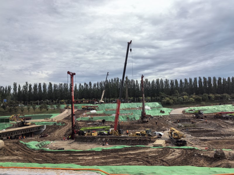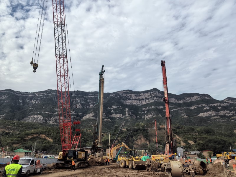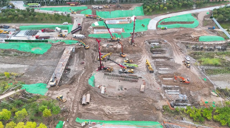 幸福橋設計為一座跨汾河大橋。項目部根據(jù)工程特點,將工程劃分為東西兩個工區(qū),分解關鍵節(jié)點工期目標,拆分成一般節(jié)點工期,再細化為每周、每日的進度計劃,層層細化,層層落實。同時,項目部安排道排、橋梁等專業(yè)施工隊,通過組織流水施工作業(yè),減少交叉作業(yè)影響,保證各工作面既滿負荷工作,又不互相干擾,加快施工進度。由于該工程施工范圍位于汾河兩岸,地質情況比較復雜,地下水位高,地下土質為卵石,開挖難度較大,施工人員先利用螺旋鉆機進行引孔,再采用“止水鋼板樁+拉森樁”的方式,起到有效防水和支護的效果。在進行橋梁基礎施工時,項目部采用正循環(huán)鉆孔灌注樁的施工工藝進行施工作業(yè),正循環(huán)鉆孔通過水泵壓送泥漿,從鉆桿柱中心進入孔底并返出,能夠快速完成鉆孔作業(yè),操作方式簡便,降低了施工難度?,進一步加快施工進度。針對工程重點難點,項目部還專門制定了《深基坑安全專項施工方案》和《高大模板支撐體系安全專項施工方案》,邀請專家進行論證,確保重點環(huán)節(jié)的施工質量。