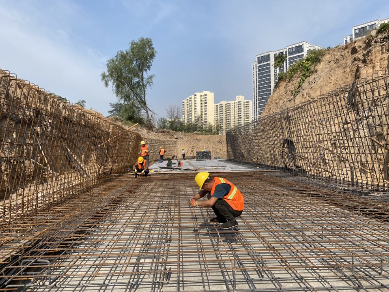 10月4日清晨,一公司承建的亞日街道路建設(shè)工程施工現(xiàn)場(chǎng)一片繁忙景象,全體施工人員堅(jiān)守崗位,全力以赴投入到緊張施工中,力求高質(zhì)量完成工程任務(wù)。該工程場(chǎng)地狹窄,周邊建筑物密集,且雨污水管線需下穿現(xiàn)狀國(guó)防光纜、電力、燃?xì)狻崃Φ染C合管線。上午8點(diǎn),施工現(xiàn)場(chǎng)各類機(jī)械轟鳴運(yùn)轉(zhuǎn),工程車輛忙碌穿梭,項(xiàng)目部嚴(yán)把各道工序,守牢細(xì)節(jié)質(zhì)量關(guān),針對(duì)管道檢查井埋深均超過(guò)5米的實(shí)際情況,施工人員采用倒掛法開(kāi)展拖拉管工作井施工,利用分層澆筑振搗密實(shí)方法,當(dāng)?shù)谝还?jié)混凝土達(dá)到規(guī)定強(qiáng)度后,便拆除模板開(kāi)展第二節(jié)倒掛井壁施工,如此循環(huán)直至達(dá)到設(shè)計(jì)井底,目前已完成工作井、接收井高壓旋噴樁支護(hù)工作,正在進(jìn)行接收井冠梁及一模澆筑。全體施工人員爭(zhēng)分奪秒、堅(jiān)守一線,以時(shí)不我待、使命必達(dá)的決心和干勁,為城市建設(shè)添磚加瓦。