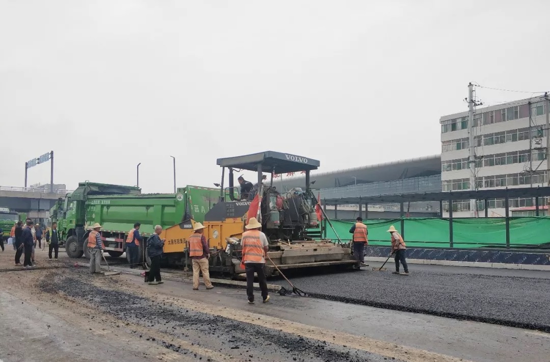 太原市政建設(shè)集團(tuán)有限公司太原南站東廣場配套路網(wǎng)工程龍堡路、光明東街等8條道路下面層瀝青已全部鋪設(shè)完成