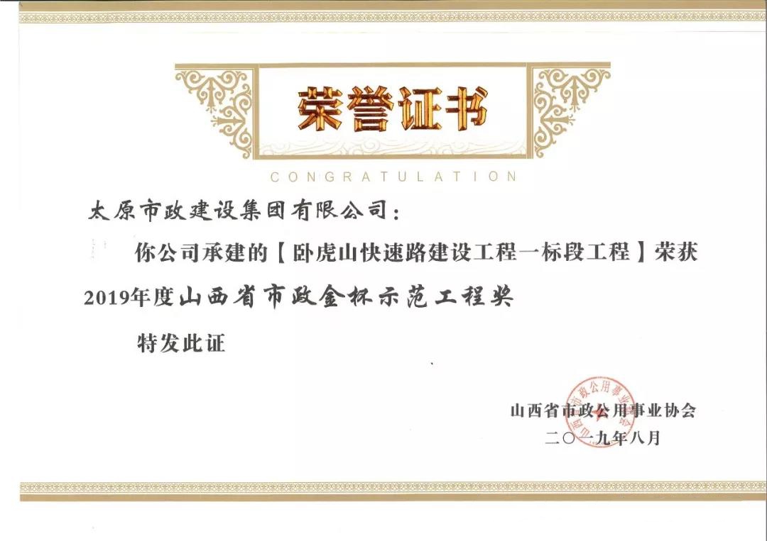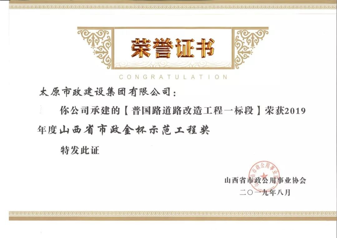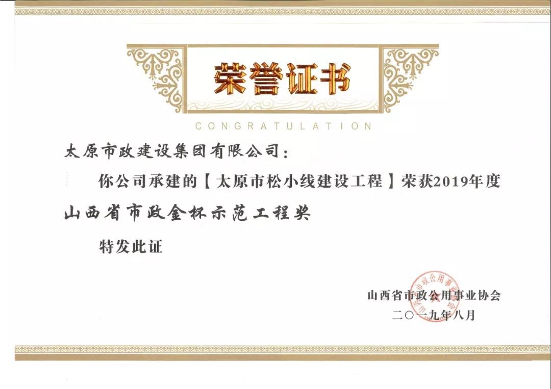 近日,太原市政建設(shè)集團有限公司承建的太原市松小線建設(shè)工程,新晉祠路(長風(fēng)西大街-冶峪街)道路改造工程,臥虎山快速路建設(shè)工程一標(biāo)段工程,普國路道路改造工程一標(biāo)段,西寨北街、西寨路道路建設(shè)工程榮獲山西省市政公用事業(yè)協(xié)會頒發(fā)的2019年度“山西省市政金杯示范工程”榮譽稱號。集團公司王愛蓮、劉桂英、李瑞金、閆玲、王根和榮獲2019年度“山西市政工程優(yōu)秀項目經(jīng)理”榮譽稱號。