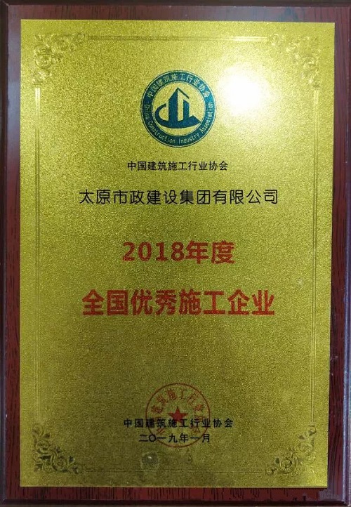 太原市政建設(shè)集團(tuán)有限公司榮獲“2018年度全國優(yōu)秀施工企業(yè)”榮譽稱號