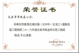 10月21日,丁曉嶸副總于長(zhǎng)治參加山西省市政公用事業(yè)協(xié)會(huì)市政工程分會(huì)常務(wù)理事會(huì),大會(huì)對(duì)總公司承建的敦化南北路(北中環(huán)—五龍口)道路改造工程榮獲“省市政金杯示范工程”和崔志華榮獲此項(xiàng)工程的“省市政工程優(yōu)秀項(xiàng)目經(jīng)理”進(jìn)行了表彰。大會(huì)還授予了總公司2013-2016年度通聯(lián)工作先進(jìn)單位。