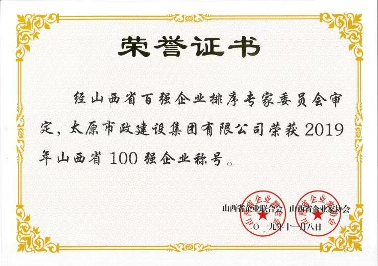 集團(tuán)公司榮獲“2019年山西省100強(qiáng)企業(yè)”稱號(hào),排名第39位。集團(tuán)公司將持續(xù)深入踐行“以質(zhì)量求生存、靠誠(chéng)信促發(fā)展”的經(jīng)營(yíng)理念,增強(qiáng)發(fā)展信心,化挑戰(zhàn)為機(jī)遇,在爭(zhēng)創(chuàng)一流企業(yè)的道路上不斷取得新的成就,為實(shí)現(xiàn)我省經(jīng)濟(jì)持續(xù)健康發(fā)展和全面建成小康社會(huì)做出新的貢獻(xiàn)。
