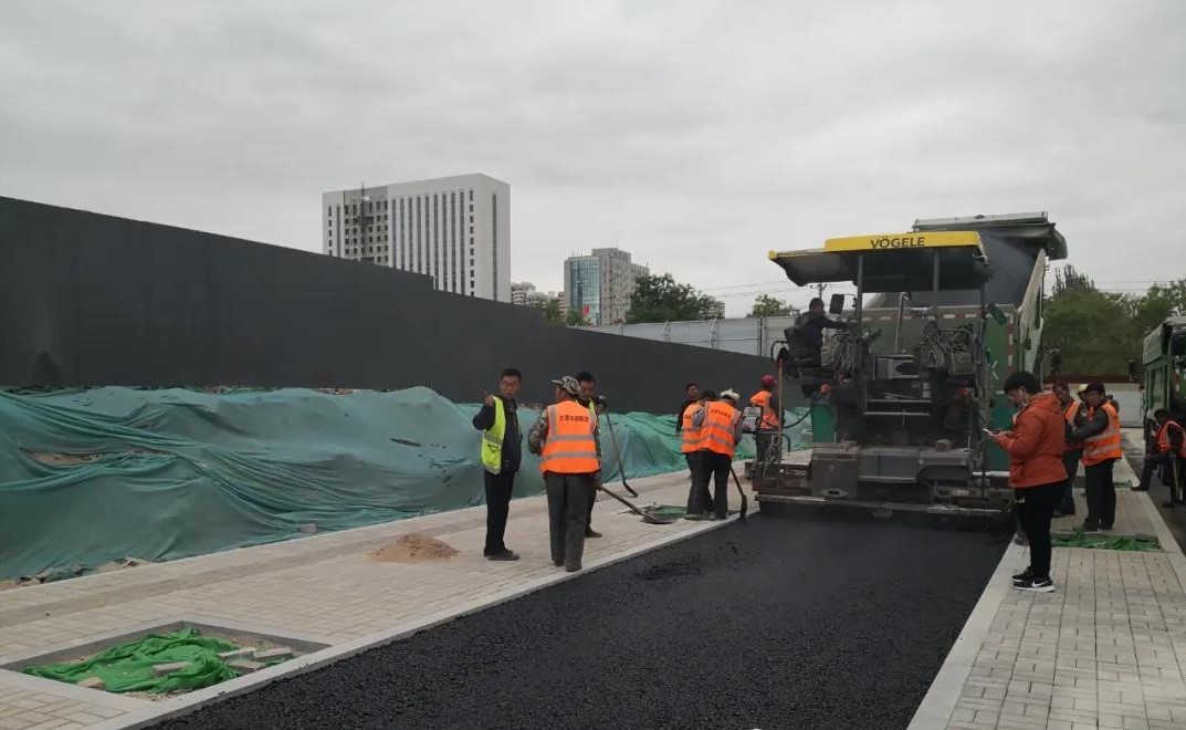 5月4日9點,當人們還在享受“五一”長假的時候,四公司軍民路改造工程施工現場,兩臺攤鋪機、四臺壓路機、十多臺運料車正在緊張施工中……隨著一車車滾燙的瀝青被攤鋪到地面,冒著刺鼻的熱氣,大家來不及擦拭臉上的汗水,緊隨攤鋪機,用手里的摟耙不停地平整著粒料。攤鋪過程中,測量員嚴格把控高程,時刻監(jiān)測相關數據,質檢員全程盯守,實時監(jiān)控鋪筑溫度和厚度,嚴把施工質量,施工員協調機械確保施工段連續(xù)鋪筑......在全體施工人員的共同努力下,430米道路的機動車道和非機動車道下面層瀝青混凝土全部鋪筑完畢。