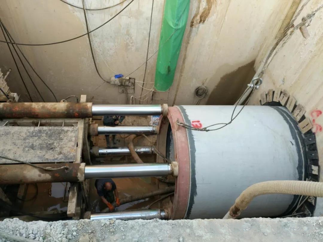 該工程全線位于尖草坪區(qū)新店村,為整個(gè)北線防洪工程的起點(diǎn),全長(zhǎng)700米,其中230米為頂管工程,470米為開(kāi)挖工程。施工中,面對(duì)拆遷進(jìn)展緩慢的情況,項(xiàng)目部不等不靠,主動(dòng)作為,積極與各產(chǎn)權(quán)單位及設(shè)計(jì)部門聯(lián)絡(luò)溝通,加快拆遷進(jìn)度,最終將施工管道位置調(diào)整到位于河道中間,順利解決拆遷問(wèn)題;開(kāi)挖過(guò)程中,因河道內(nèi)淤泥量大、水位高,且清淤后仍有大量鐵渣不易清理,每天只能開(kāi)挖和吊裝三根管,項(xiàng)目部快速制定施工方案,采用“挖機(jī)+炮錘”的開(kāi)挖方式,先使用炮錘破碎鐵渣,在利用挖機(jī)進(jìn)行開(kāi)挖,快速推進(jìn)開(kāi)挖進(jìn)度,為后續(xù)施工贏得更多時(shí)間;在105井頂管過(guò)程中,因其前方有礦渣層導(dǎo)致推進(jìn)受阻,項(xiàng)目部在保證頂管持續(xù)頂進(jìn)的同時(shí),采用挖機(jī)將礦渣層快速清除,防止了誤工情況發(fā)生。