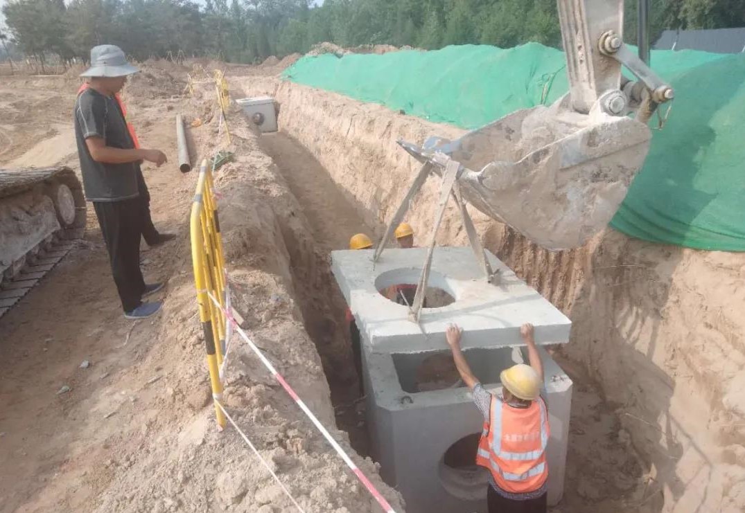 該工程包括道路工程、給排水工程、供熱工程、電氣及弱電工程等,涉及雨水、污水、給水等九種管線施工。施工前,項目部針對工程管線多,且各類管線的埋深及位置不同,因地制宜、提前規(guī)劃,安排施工人員第一時間摸清管線施工位置,做好分區(qū)域、分層次施工安排。施工中,項目部針對工程點多面廣的情況,將整個工地分為東西兩個工區(qū),安排四個施工隊分別負責各類管線施工,交叉利用機械進行倒替作業(yè),為后續(xù)施工贏得更多時間。同時,由于雙塔景區(qū)項目分九個標段,周邊施工的兄弟單位眾多,管線及道路施工都與園林、古建等施工單位存在交叉施工的情況。項目部“兩手抓、雙推進”,一邊組織相關人員進行現場勘察,優(yōu)化施工方案;一邊積極與業(yè)主及周邊施工單位進行溝通協調,合理確定機械、材料等進場時間,采取錯峰施工,最大化減小交叉施工影響,加快推動工程進展。