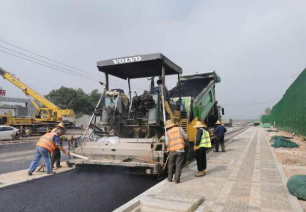 8月15日,四公司承建的龍城大街東延(東峰路—太榆界)建設工程非機動車道及輔路的瀝青混凝土下面層已鋪設1.2公里,已完成總工程量的50%。下一步將進行下穿東山過境高速通道及防洪箱涵的施工建設。