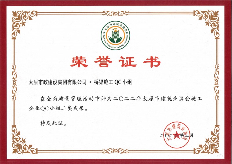 2022年太原市建筑業(yè)協(xié)會施工企業(yè)QC小組二類成果_橋梁施工QC小組