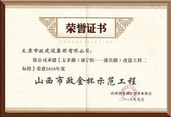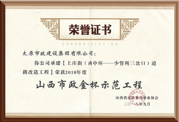 2018年度山西市政金杯示范工程