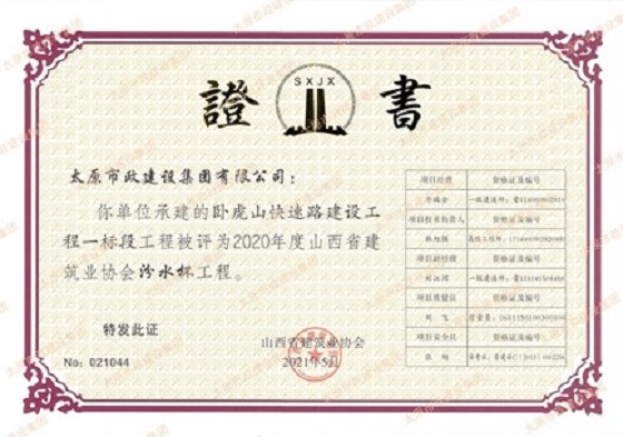2020年度汾水杯 臥虎山快速路建設(shè)工程一標(biāo)段